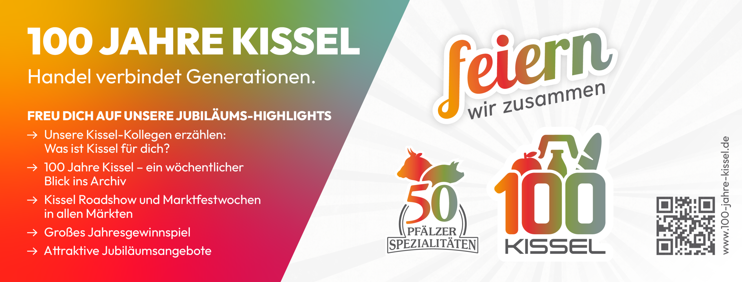 Seit 1926 steht Kissel für Qualität, Verlässlichkeit und starke Partnerschaften. Unter dem Motto „100 Jahre Kissel – Handel verbindet Generationen“ feiern wir dieses besondere Jubiläum gemeinsam mit Ihnen – das ganze Jahr über und in der gesamten Unternehmensgruppe.