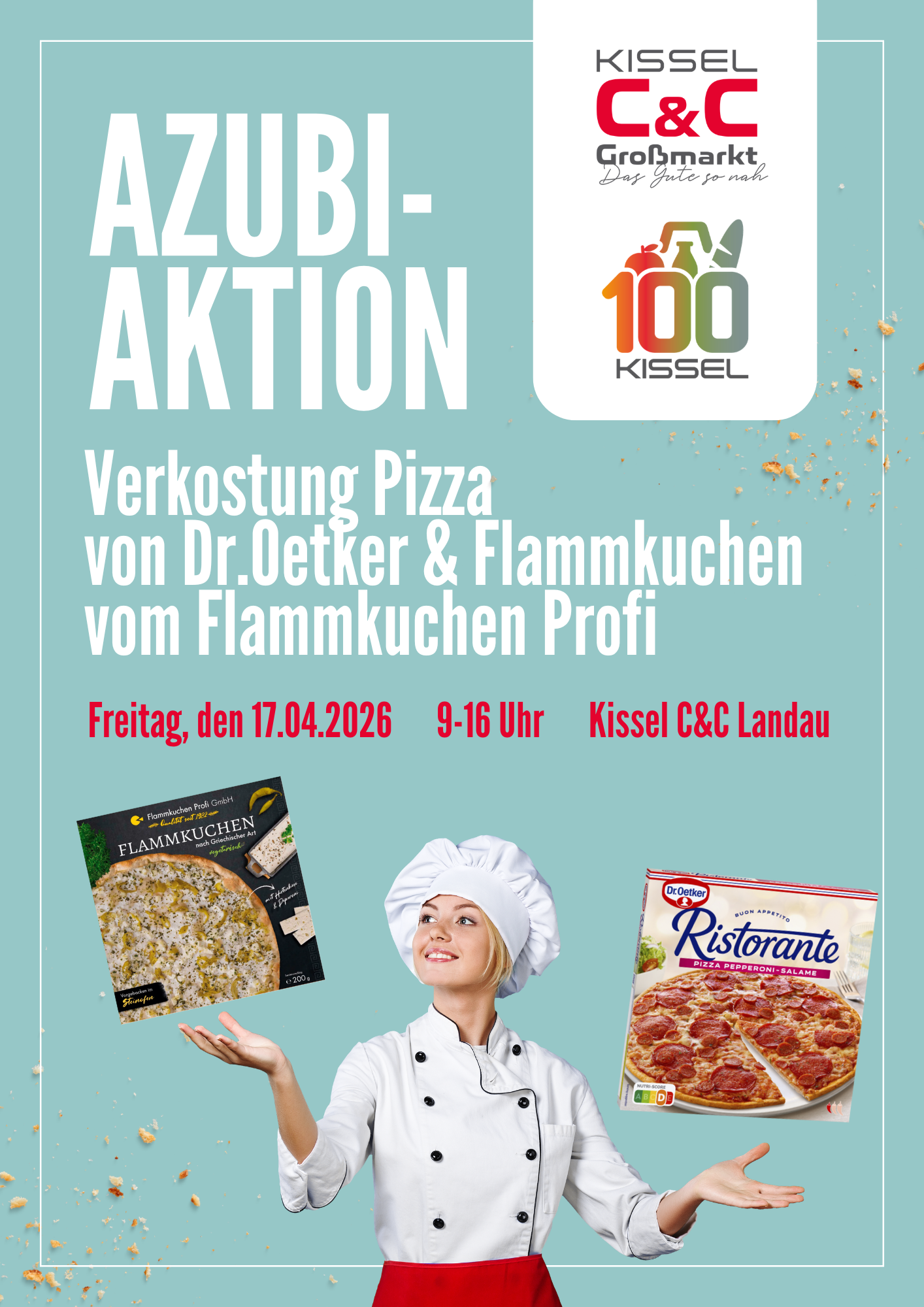 Im Rahmen unseres Jubiläums „100 Jahre Kissel – Handel verbindet Generationen“ engagieren sich auch unsere Auszubildenden aktiv und bringen eigene Ideen ein. Im Kissel C&C Großhandelsmarkt Landau organisieren sie über das Jahr hinweg mehrere Verkostungsaktionen mit einem besonderen Ziel: Genuss und soziales Engagement zu verbinden. Die Verkostungen finden gegen freiwillige Spenden statt. Der gesamte Erlös wird für einen guten Zweck eingesetzt.
