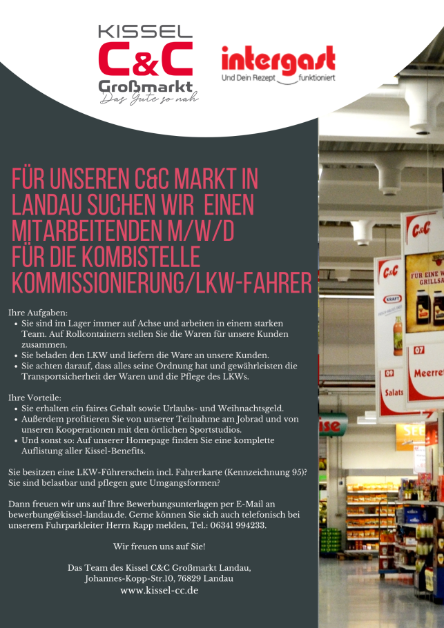 Dann freuen wir uns auf Ihre Bewerbungsunterlagen per E-Mail an bewerbung@kissel-landau.de.