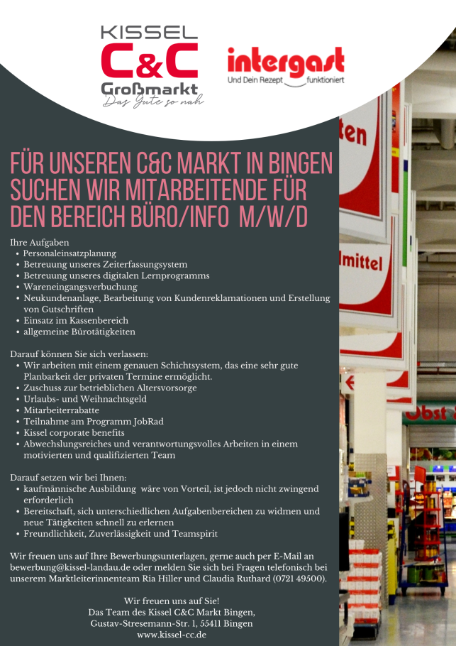 Kissel C&C Gastromarkt Bingen – Mitarbeitende für Büro/Info (m/w/d)